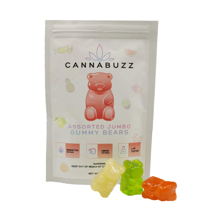 Cannabuzz – Assorted Jumbo Gummy Bears – 1000mg THC | BC Weed Edible Canada