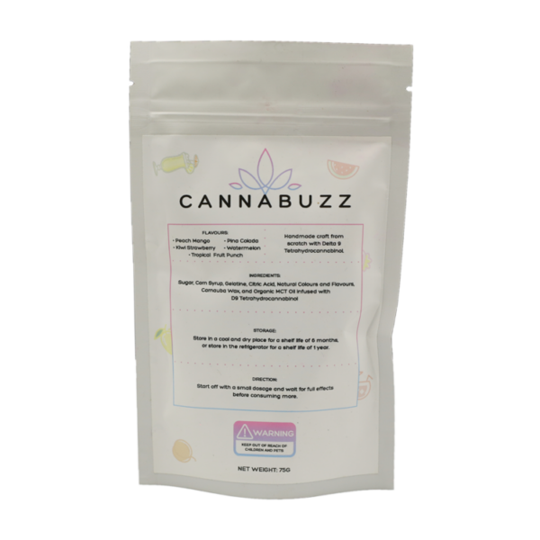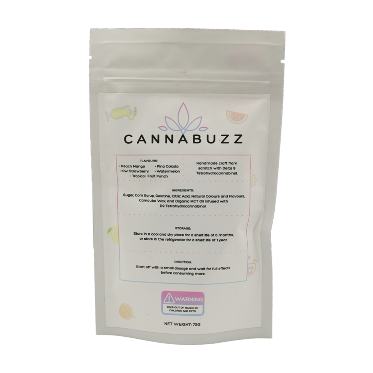 CannaBuzz Assorted Jumbo Gummy Bears are yummy gummy bears infused with real unique and vibrant flavours. They are handmade from scratch using natural ingredients and high-grade solvent-free extract to satisfy the fussiest gummy edible fiend. It will leave you saying wow and drooling for more. Also available in variations of THC & CBD assortments from 150MG to 1000MG to cater to your individual edible appetites. We made them extra potent to shoot you off into the fruity rainbow bliss. Therefore, we recommend you regulate yourself when taking them.