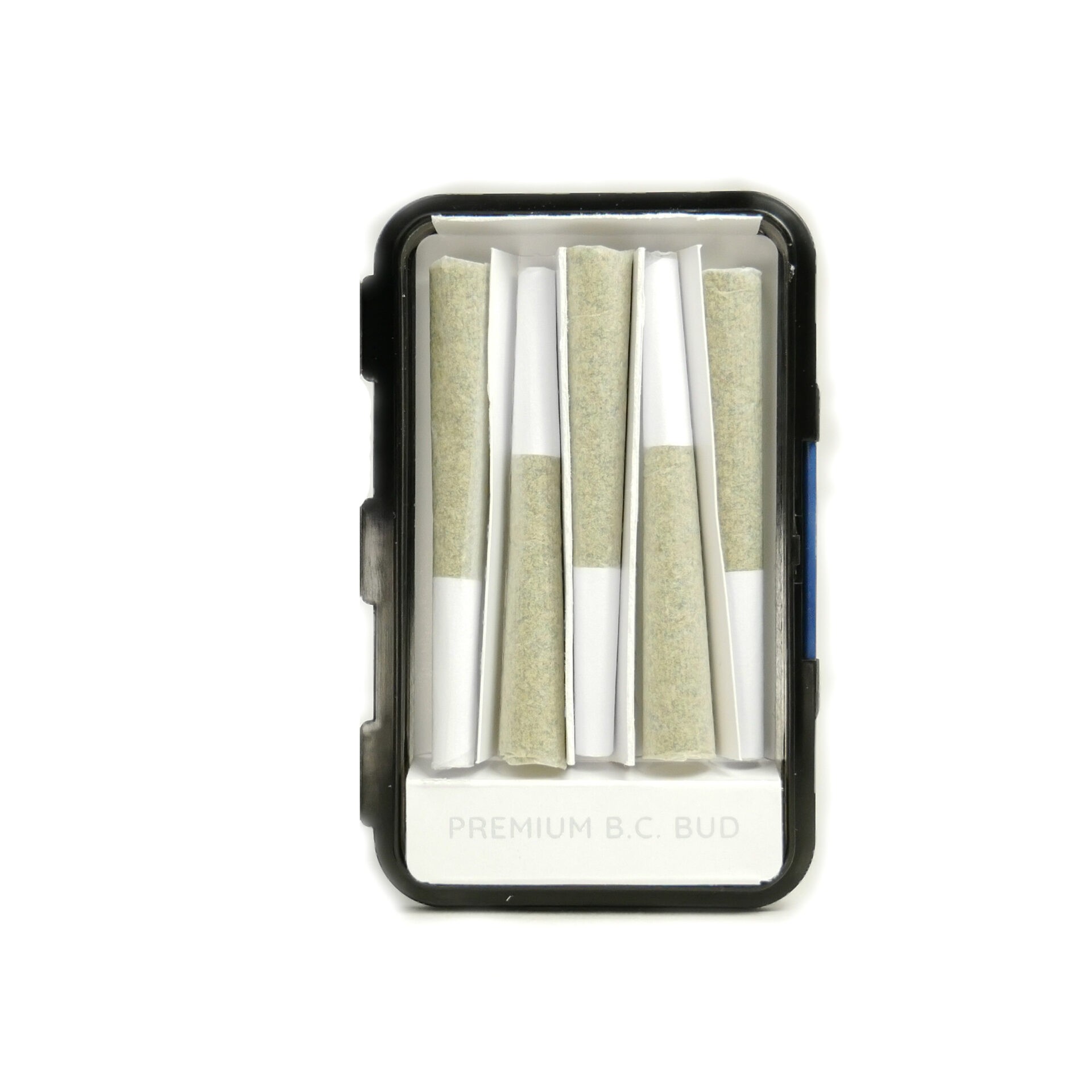 Each case has 5 Pre-rolls filled with our own premium small batch locally grown B.C. cultivars. Packed in our signature metal grab-and-go Pre-Roll case that fits perfectly in your purse or pocket and can be reused or recycled.