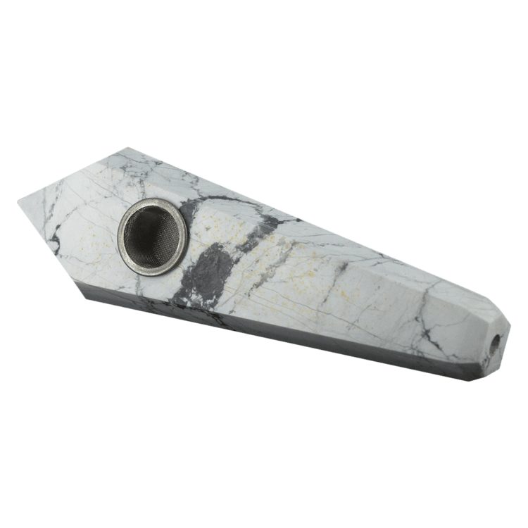 Each one of our pipes can be cleaned the same way as a glass pipe, rubbing alcohol won’t damage any of our stones.